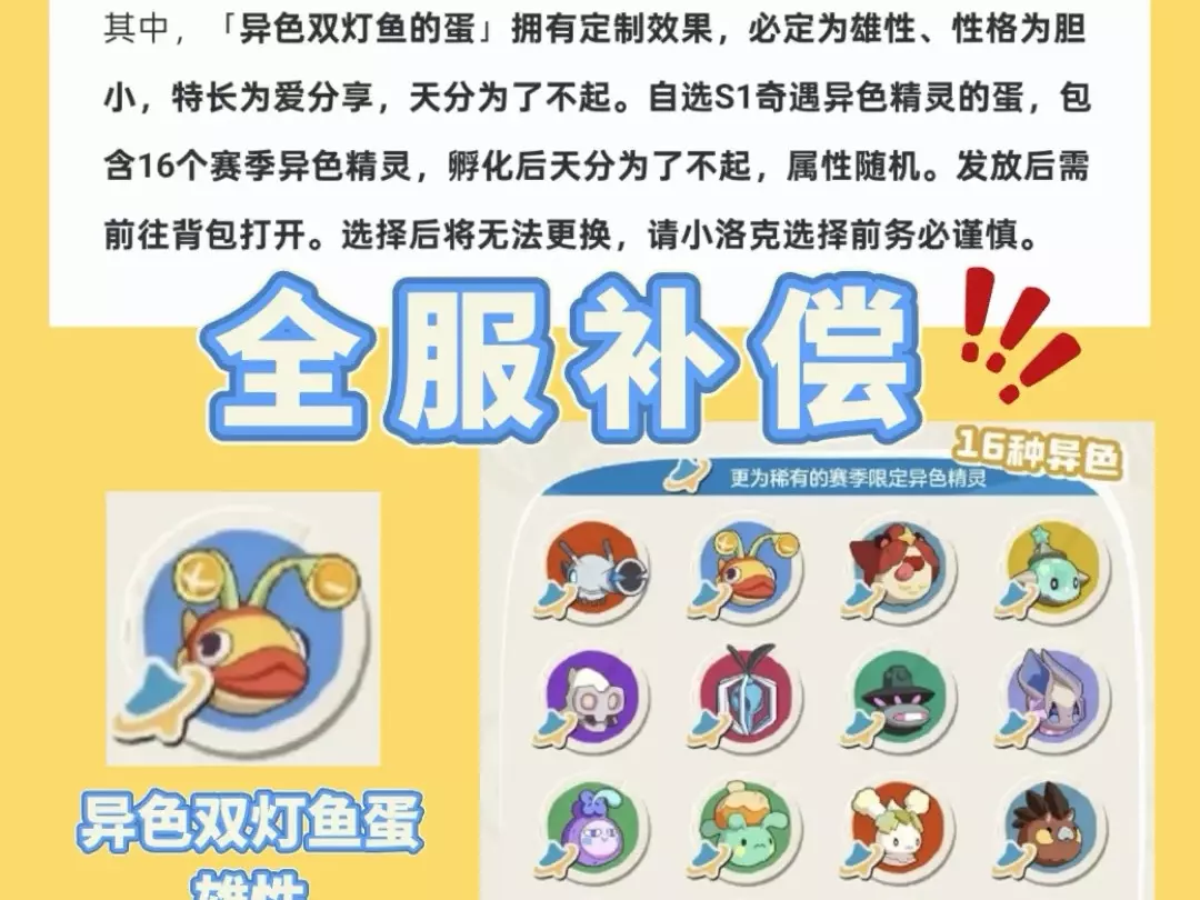 洛克王国世界RPG将于16号更新,本次更新会发放2个异色精灵蛋补偿,优化简化了咕噜球合成配方。更新前玩家需要注意提前预留2个棱镜球,不要在传送点回顾精灵,这些细节能帮你更好获取异色炫彩宠物。