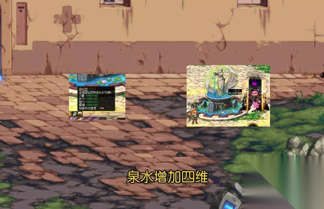 很多人最关心的就是活动奖励,我玩这个游戏给我带来什么好处,有什么提升?相比大家想的都是这个问题,所以第一时间先告诉有什么奖励,再考虑是否值得去玩。 地下城与生活奖励共分为好几种,其中第一种就是“和平泉水”增加四维buff,在冒险团属性原有的基础上增加20点四维,效果持续一段时间。 虽然看起来是蚊子腿,不过效果还是可以的。随着泉水等级提升,效果还会再次升级。 二、兑换武器装扮