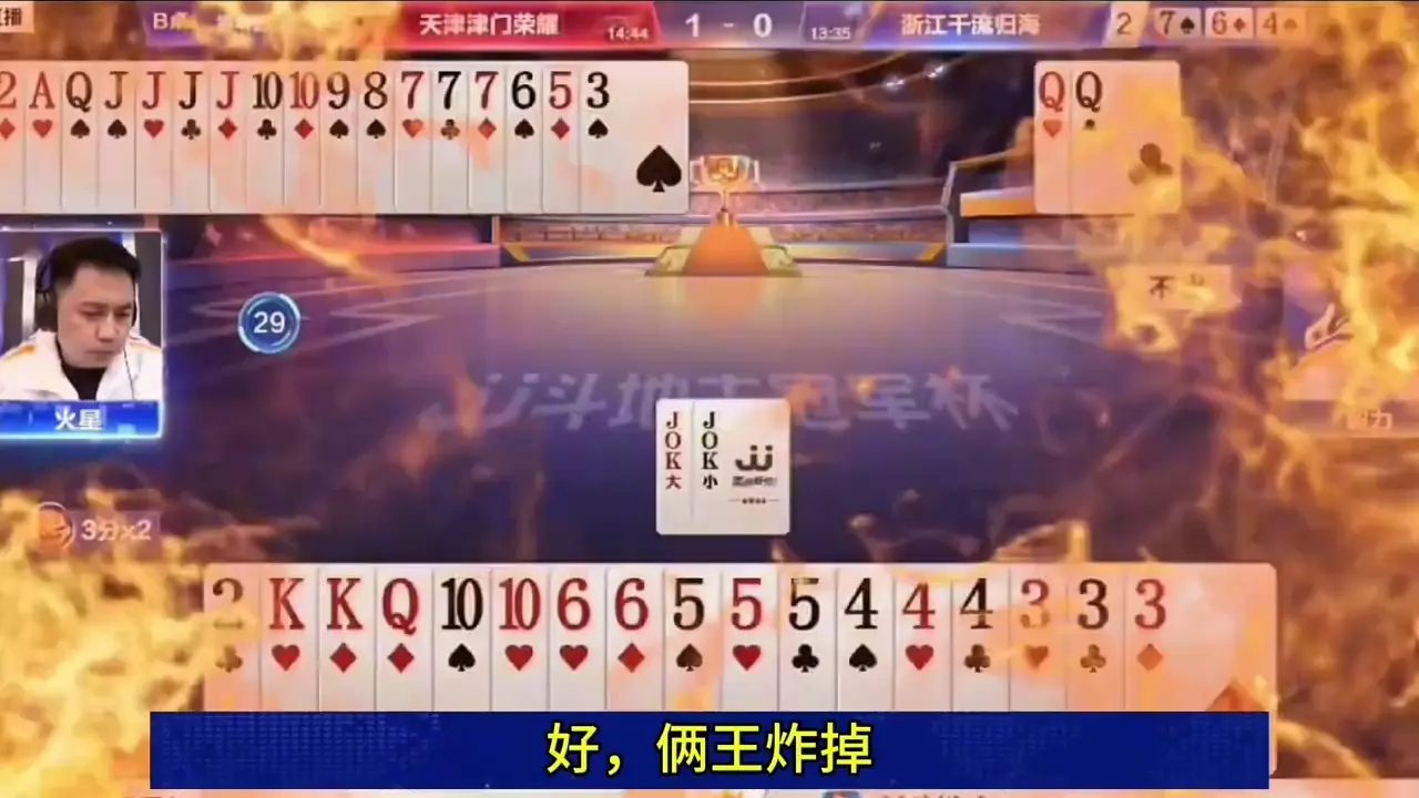 这是JJ斗地主冠军杯天津津门荣耀对战湖北强盛的精彩集锦,牌局中残局连续反转,选手通过顶K等出牌策略制造反转看点,尽显JJ斗地主的竞技趣味性。