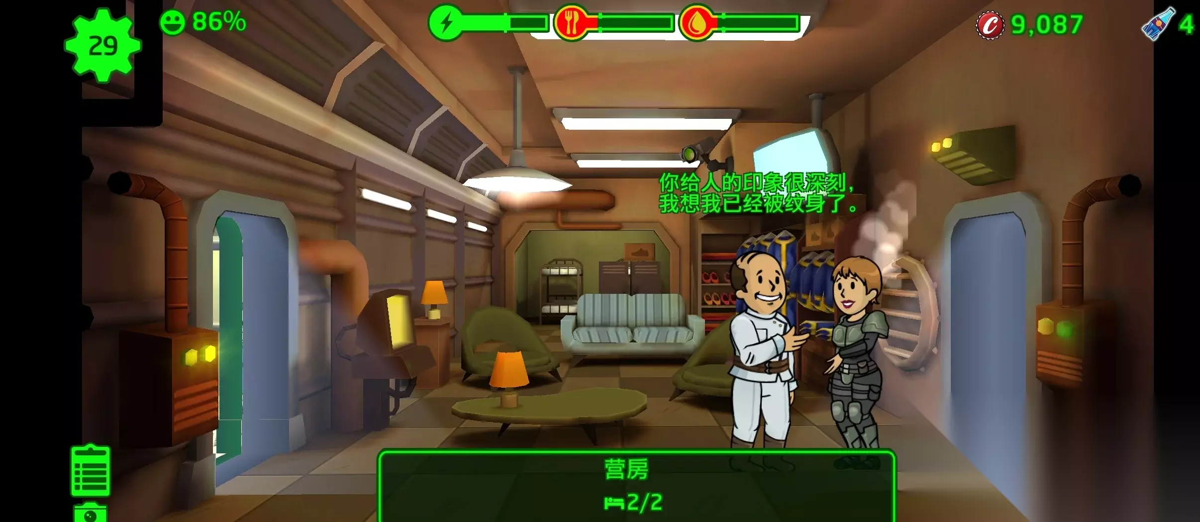 日常任务不是每个都要完成,优先选择那些对自己的避难所发展有利的任务,之后选择那些给进度值较高的任务先做,以拿到最后的奖励为主要目标。日常任务每天不一样,但换来换去也就那几种,把任务流程搞清楚之后就选择自己熟悉的做。