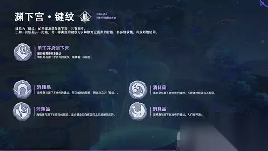 渊下宫键纹那些事儿 渊下宫键纹是原神里的道具,能解锁图案封锁。这玩意儿分五种,后头几种得花钱买。好多人不知道咋用,我们这就说说。这游戏里的键纹挺有意思,得好好琢磨琢磨。