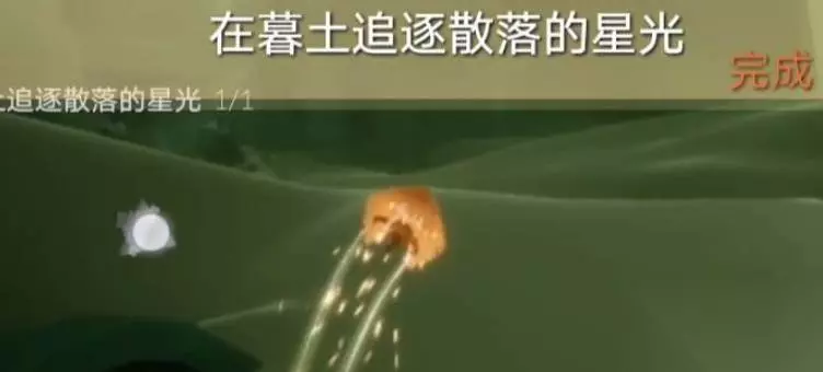 追散落的星光是个日常任务,做完了能拿到季节蜡烛去换装扮。这个星光就是个会飞的黄色小光点,你需要控制你的光崽飞过去碰到它才行。这个任务的关键就是等和看,每个地图里的星光都有自己固定的溜达路线,你只要找到地方,稍微观察一下它怎么飞的,算好时机跳起来或者飞一小段,轻轻一碰就搞定啦。