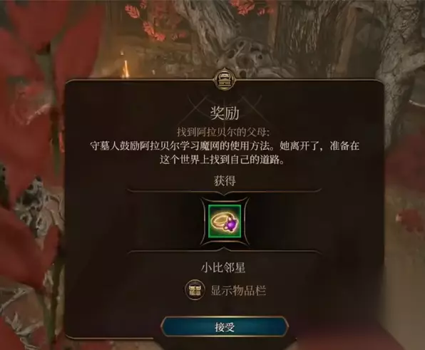 3、玩家回到幽影诅咒之地后与阿拉贝尔对话完成任务,可以获得一个绿色的小比邻星。