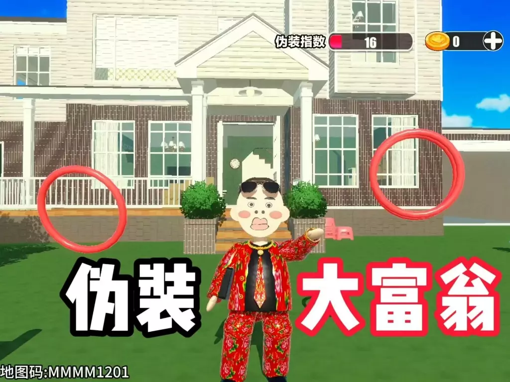 这是蛋仔派对的“伪装大富翁”解谜地图,玩家将扮演穷小子,要在高中同学到来前,把家伪装成大富翁的别墅,完成伪装挑战,输入对应地图码即可游玩该地图。