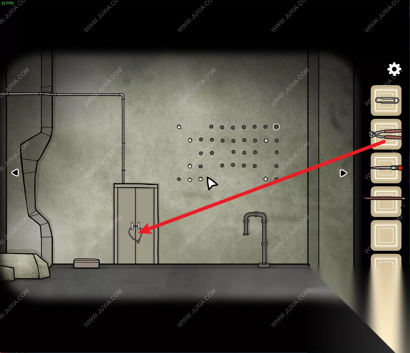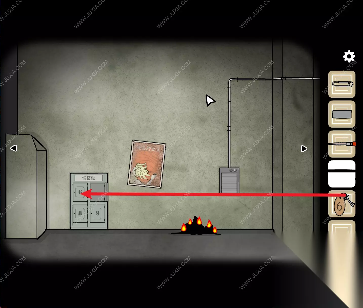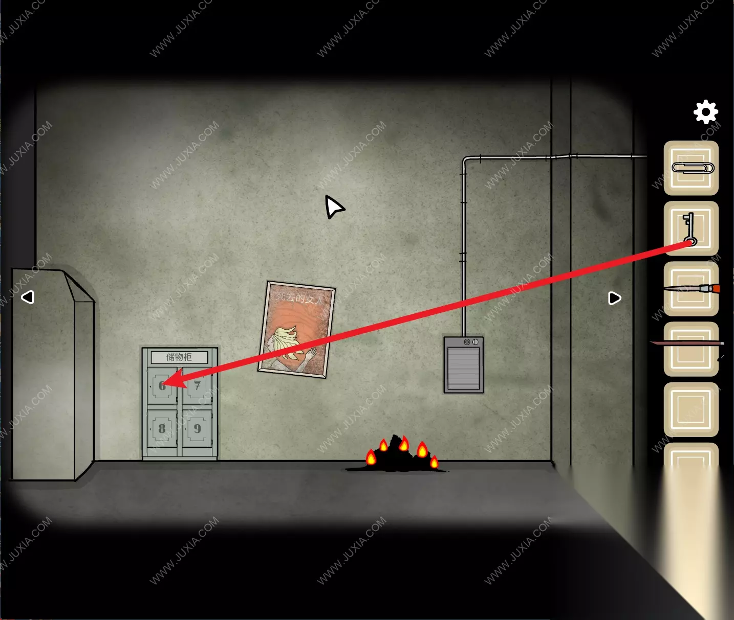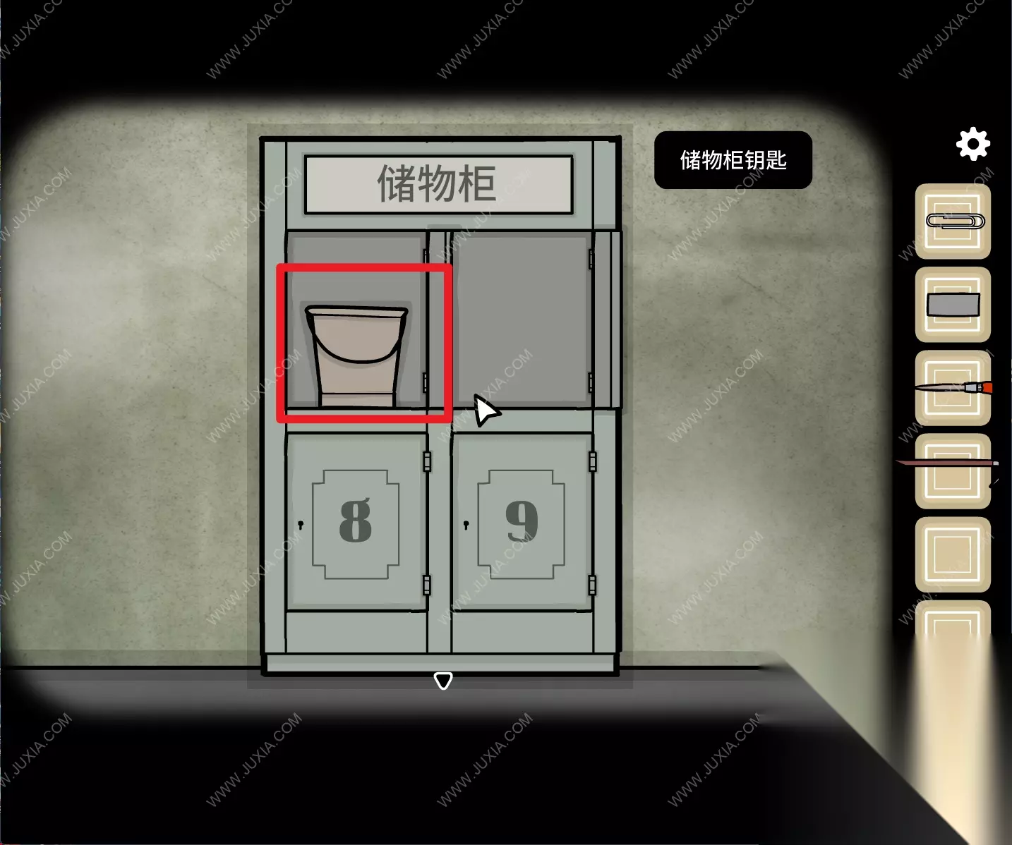 134.来到储物柜场景,用【钥匙】打开7号储物柜,得到【钳子】。134 134.1