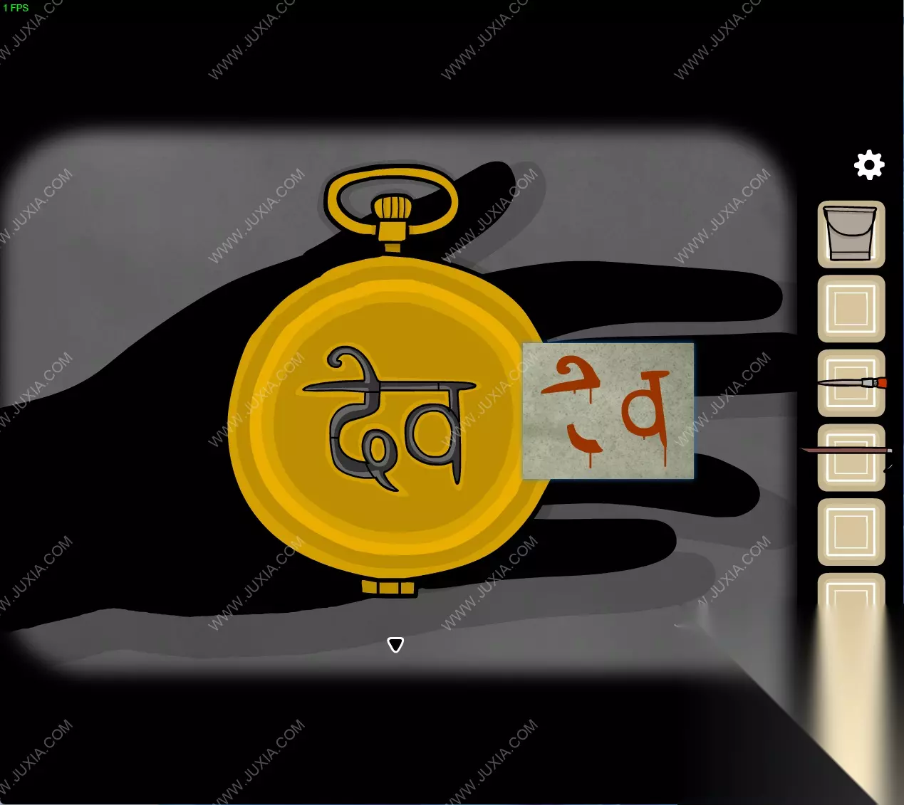 155.回到初始场景,将得到的【怀表】交给黑色人影,并按照初始场景墙壁上的图案激活怀表上的图案。155 155.1