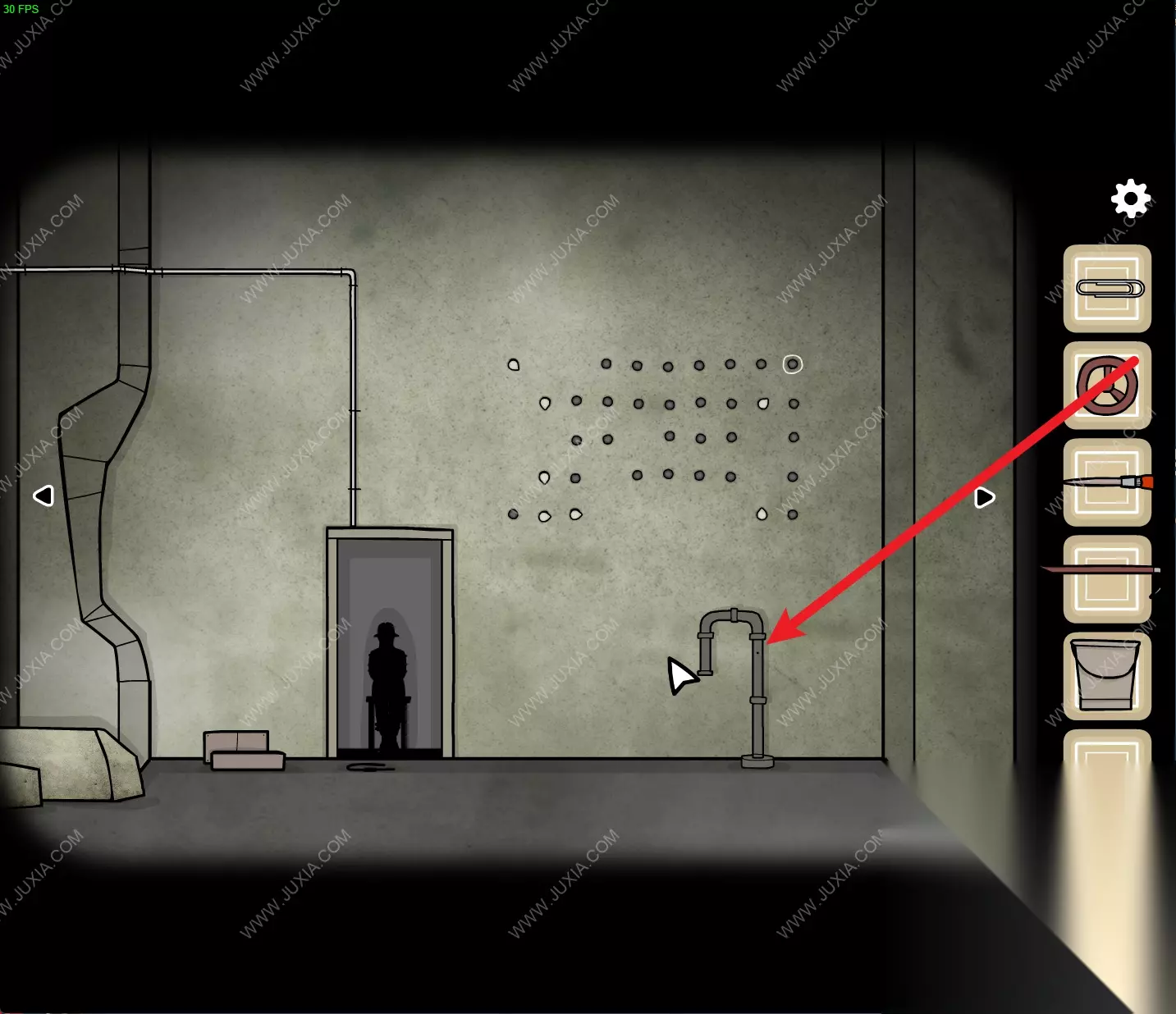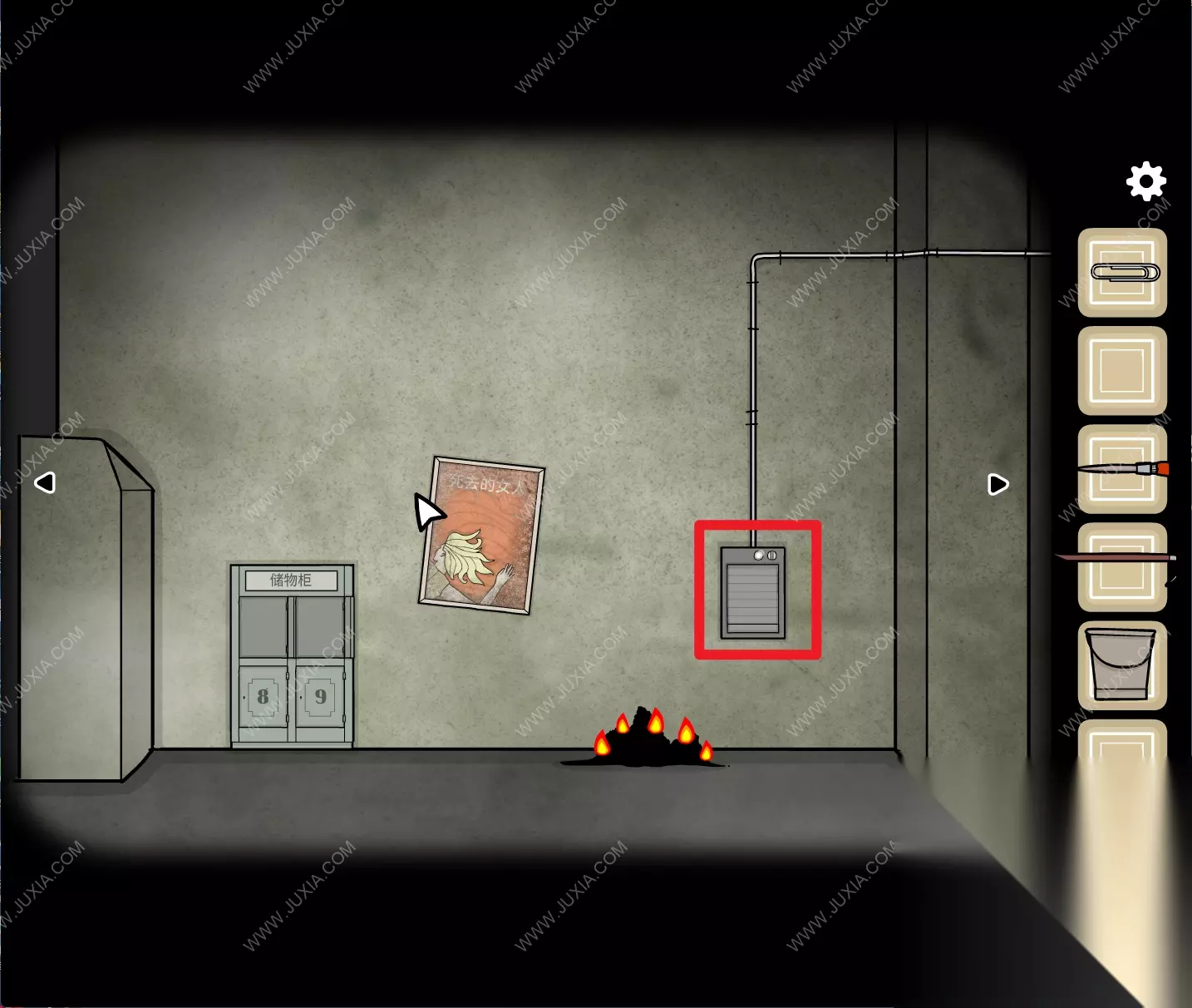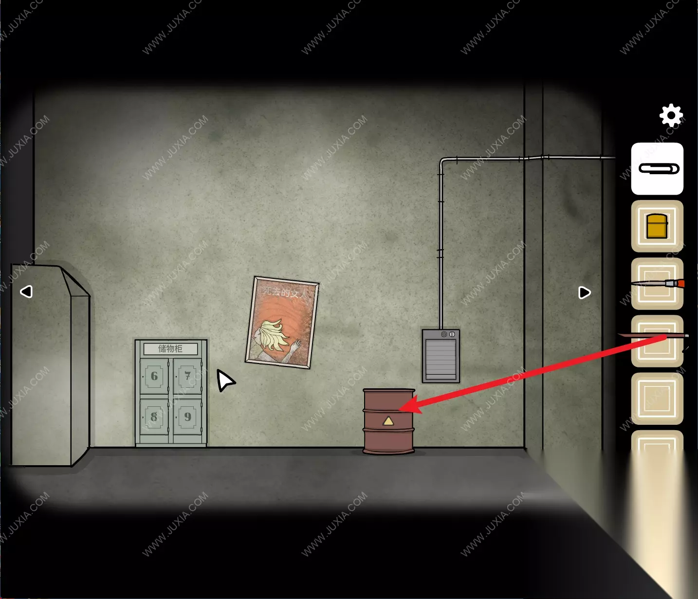 140.来到海报场景,点击墙上的按钮将格子打开,得到【阀门】。140 140.1