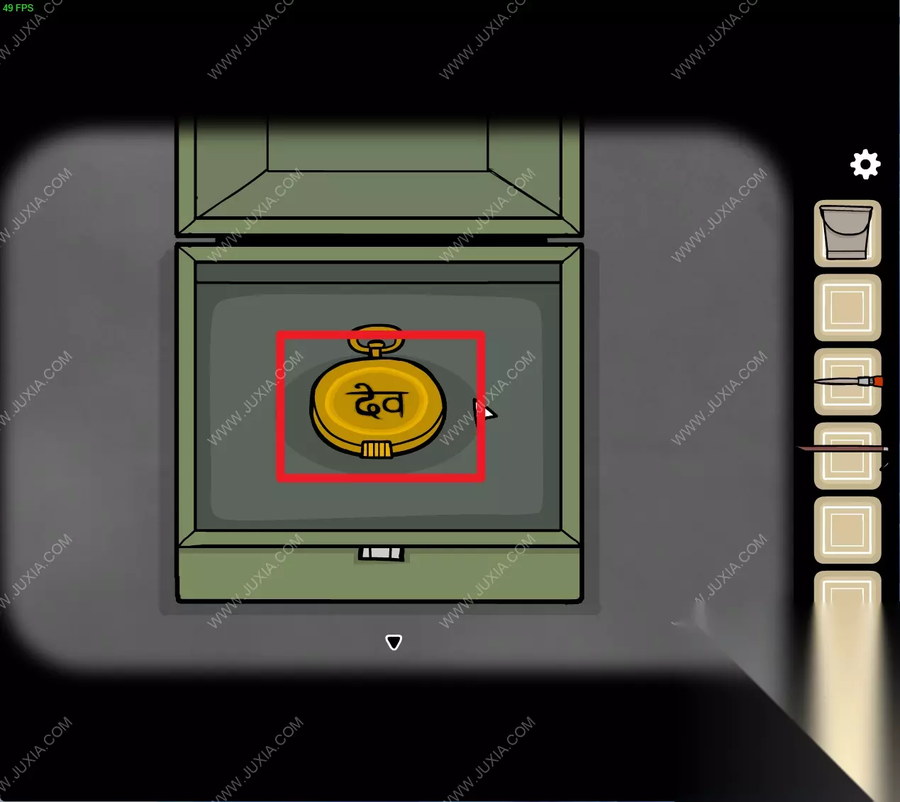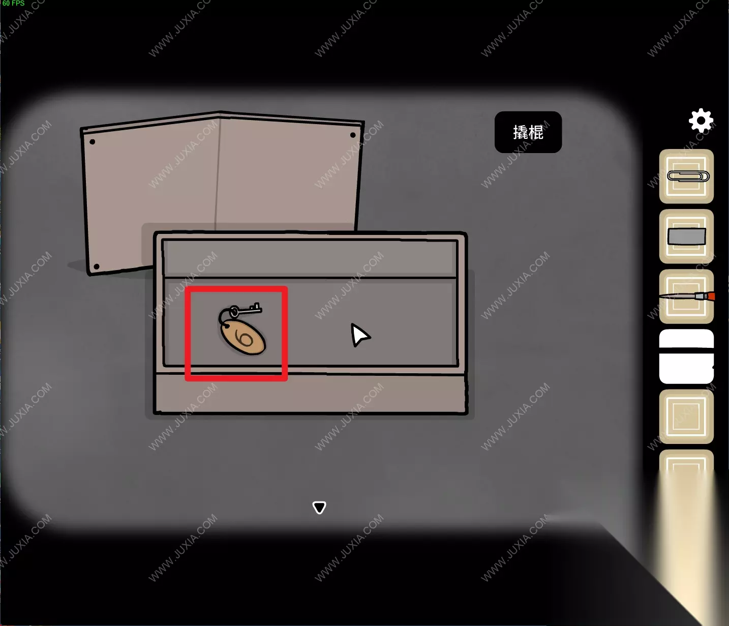 136.回到洞墙场景,用【撬棍】打开场景左下角的铁盒子,得到【钥匙】。136 136.1
