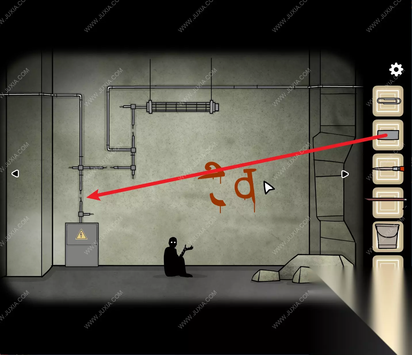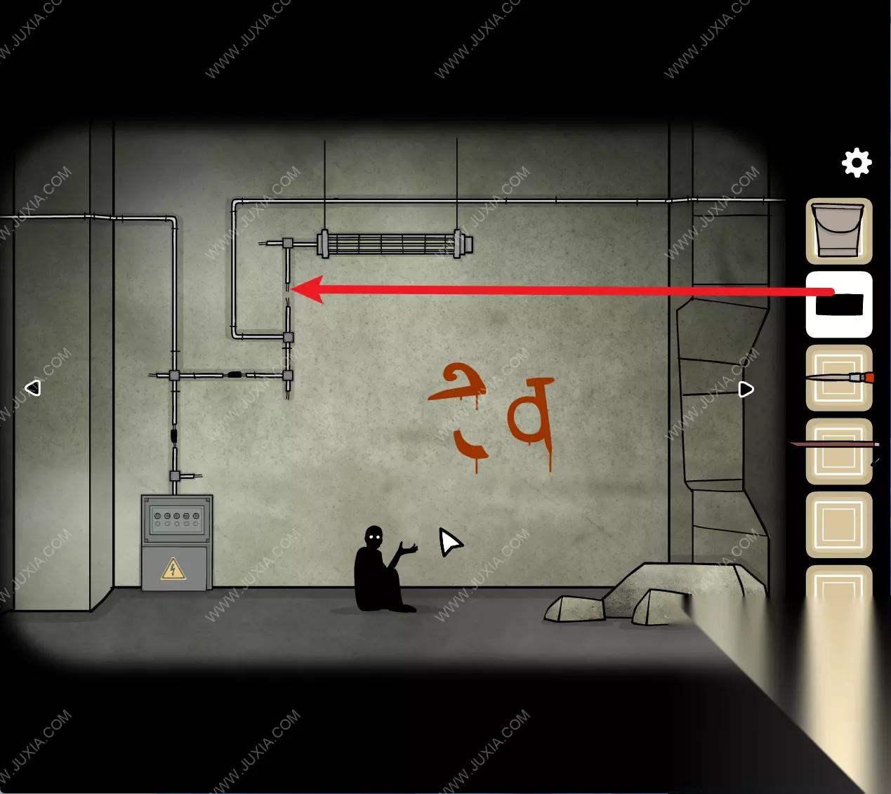 138.回到初始场景, 用【胶带】将电箱上方断掉的电线接上。138