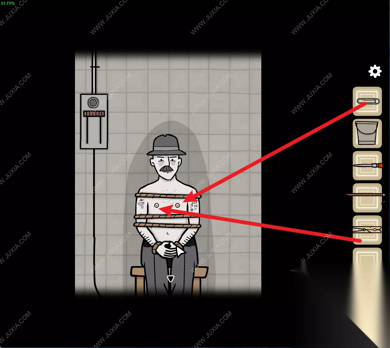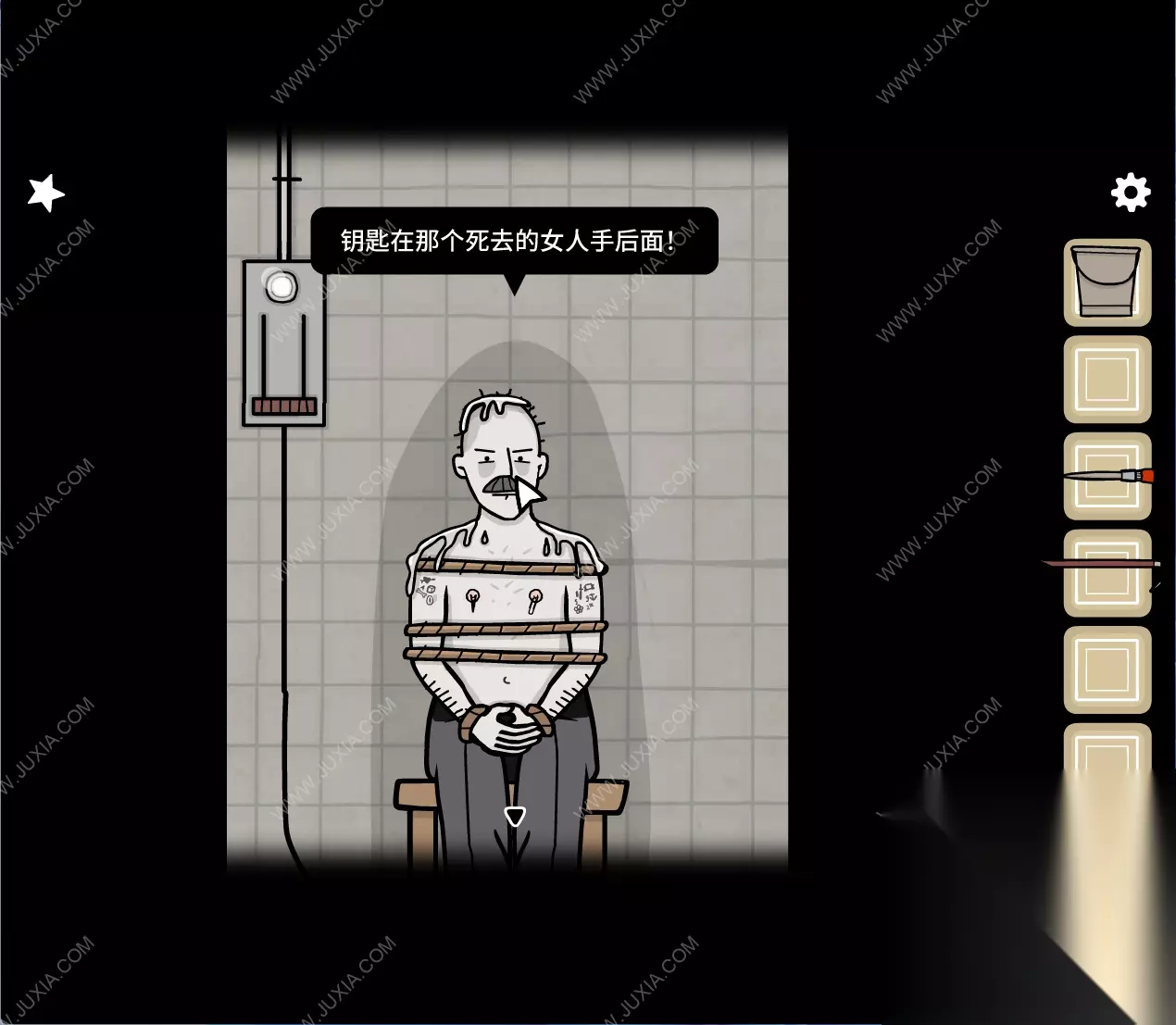 149.回到监牢房间中,扳动男人左侧的电闸。随后点击男人进行交互得到线索。149 149.1