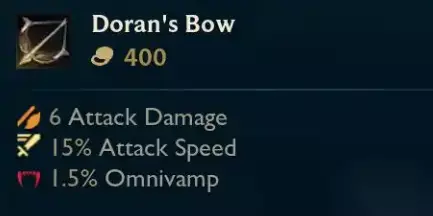 ②、多兰之弓:提供攻击力、攻速与全能吸血,适合追求极致收益的激进玩家。