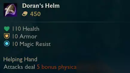 2、2个新的出门装。 ①、多兰之盔:提供生命值、护甲与魔抗,适合舍弃生命回复的英雄。