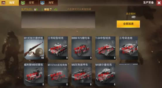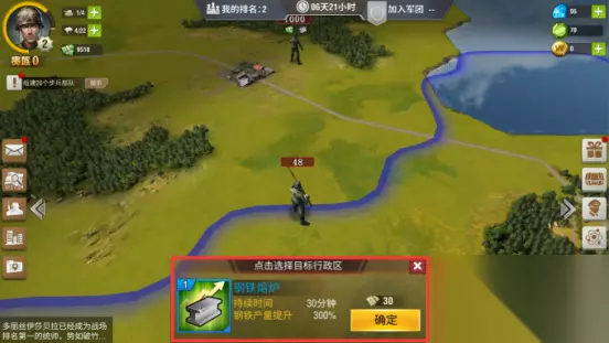 二. 提升部队实力:1、军事基地和兵工厂等级将影响能否建造新的兵种,军事基地用于组建部队,而兵工厂则用于建造组建部队所需的兵器及装备,在前期快速提升这两个建筑的等级,并尽快组建机动部队,将会有效帮助统帅扩大优势。