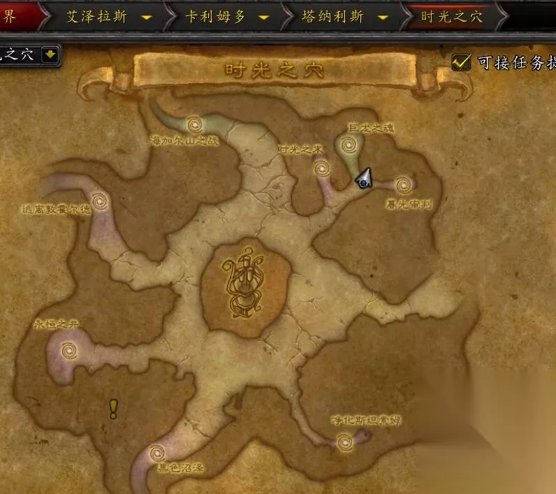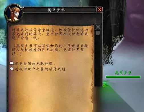 接下来是大地的裂变: 大地的裂变版本只有巨龙之魂有随机难度可以排,也只有巨龙之魂套装有随机难度的配色,火焰之地和暮光堡垒等等套装都没有随机难度配色。 巨龙之魂的随机难度进入NPC在时光之穴,也就是巨龙之魂副本门口: