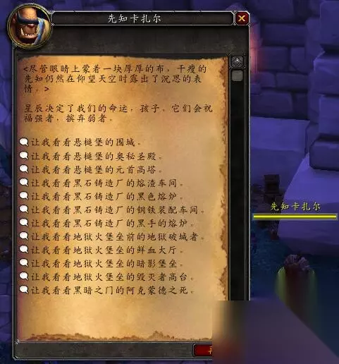 如果想要随机难度的套装,就只能去刷随机难度团本了。当前版本的话可以用团队查找器,而以前版本的就只能在NPC那里排了。 首先就是德拉诺版本的: 德拉诺版本的NPC在要塞里:出了要塞就在要塞主建筑的旁边,部落和联盟都是同一个NPC,黄名兽人先知卡扎尔: