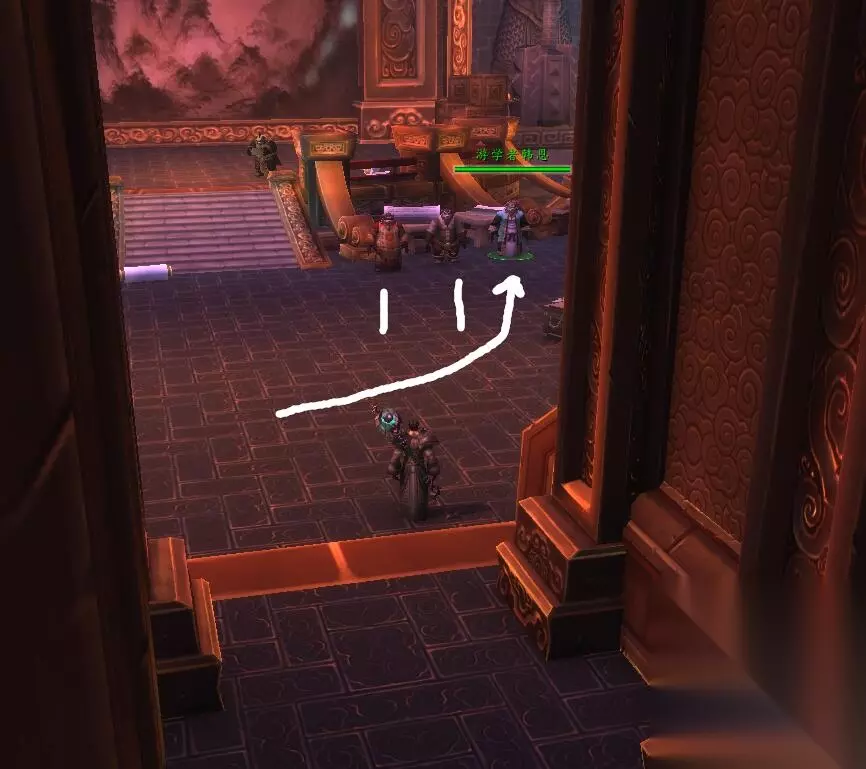 然后熊猫人版本: 熊猫人版本的随机团本NPC在锦绣谷的闻道之作,就是魔古山宫殿的二楼:
