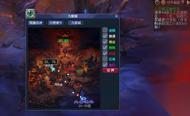 这个时候,你需要先拿上一把90级以上的武器,再通过大唐境外176.91处的飞廉幻影进入九黎城,之后到39.76处找到食铁兽,就能开启任务了。