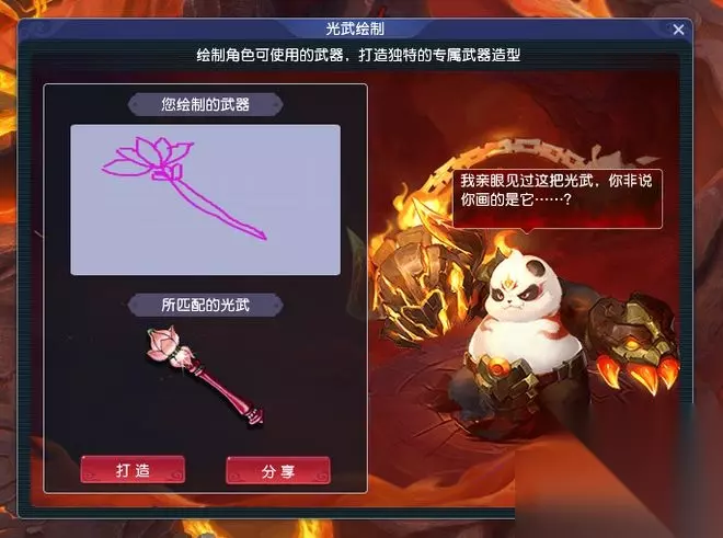 目前全服放出的任务为“九黎危机”和“九黎危急”,对于除了九黎城之外的其他门派来说,任务进度达到100%后,食铁兽处会解锁“光武绘制”系统,大家可以通过绘制武器的方式为每个侠士打造记忆中的光武。但是,打造之前需要通过你的绘画让食铁兽识别出对应武器。