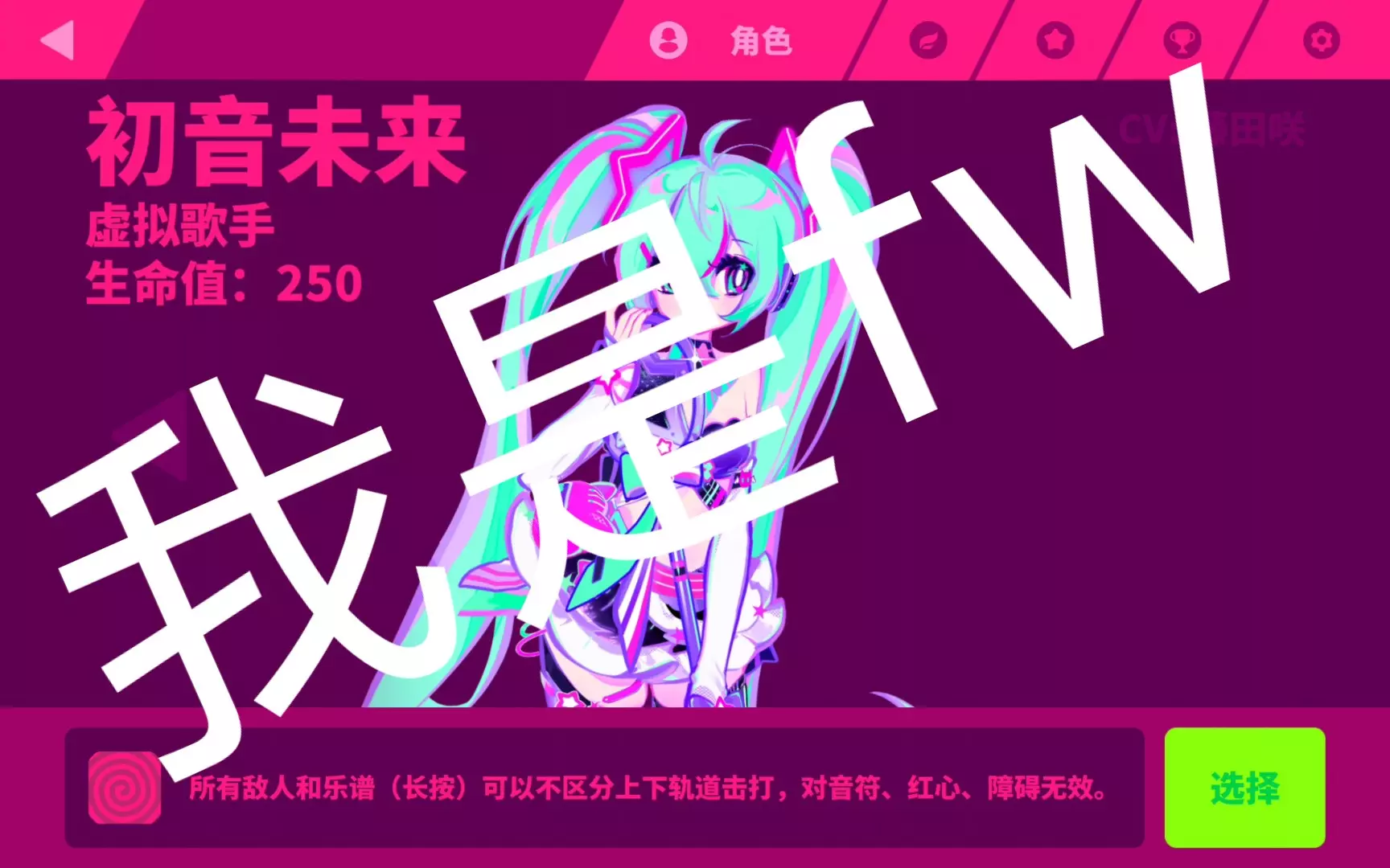 这是音游《Muse Dash》的游戏画面,玩家操控初音ミク进行游玩,其技能十分实用,能将乱交谱面破解为纵连,帮助玩家获得大量PERFECT判定,打出高连击数。