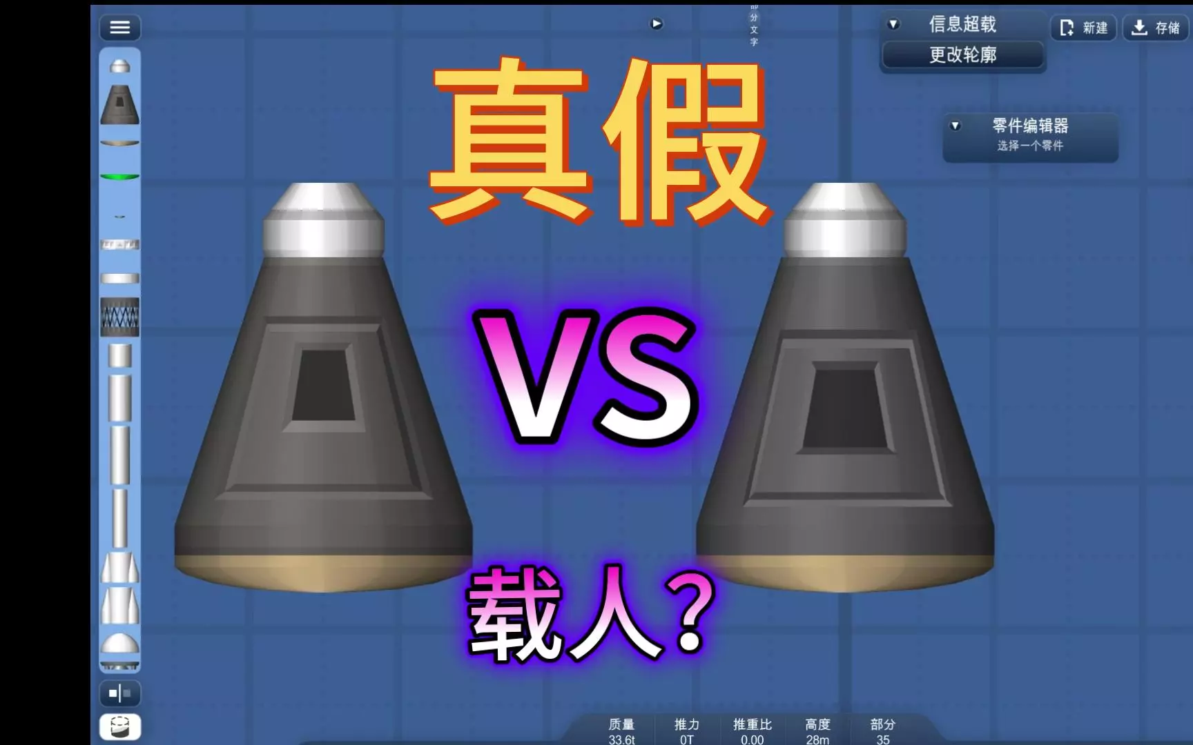 这是航天模拟器中的太空玩法展示,图中开启了无重力、无热损伤等特殊修改选项,展示了玩家自建的小型太空舱起飞、降落的全过程,带您体验航天模拟器里的太空探索乐趣。