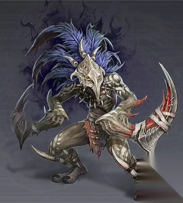 蛮人巢穴怪物录 | 黑暗蛮人·亡刃 黑暗蛮人·亡刃,一个神秘的蛮人,曾经深入「诅咒之地」获得了魔神的羽毛并将其制成了威力强大的面具。可魔神面具一旦戴上便无法摘下,亡刃的身体也开始逐渐向魔物变化。