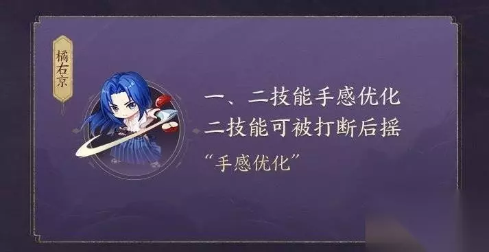 5、橘右京 一、二技能手感优化,二技能可被打断后摇,手感优化。
