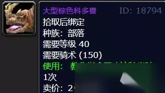 大型棕色科多兽【40级,售价2金币/50银币】