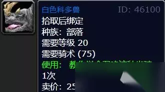 白色科多兽【20级,售价25银币】