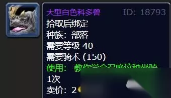 商品一览: 大型白色科多兽【40级,售价2金币/50银币】