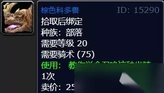 棕色科多兽【20级,售价25银币】