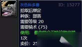 大型灰色科多兽【40级,售价2金币/50银币】