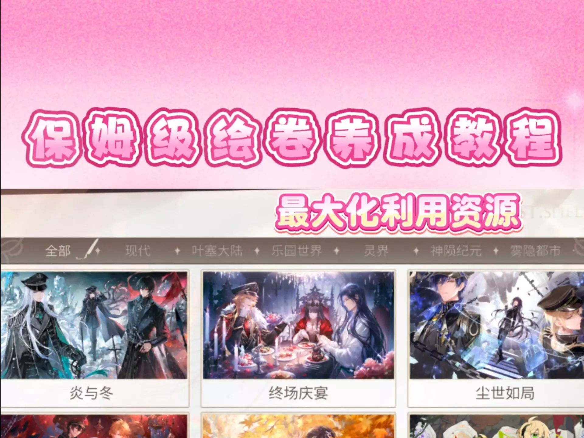 本篇非梯度榜,只面向新人小画家,主要涉及开服至三周年活动的SSR画灵,篇幅较长已按男主分类方便大家查找,正文2分42秒开始,养卡一览表空降52分09秒,绘卷指南…