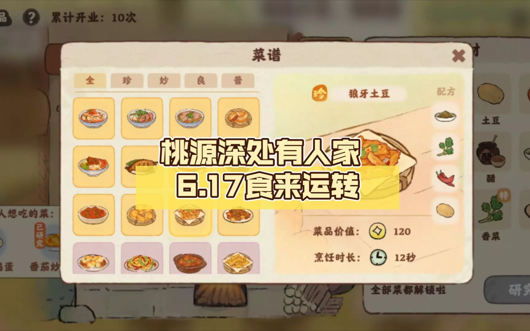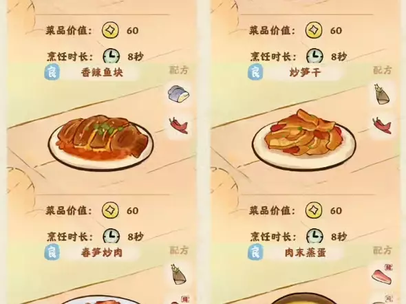 桃源深处有人家食来运转最新菜谱更新咯,目前菜品等级分为普通、良品以及妙级哦,每个食谱都有专属的食谱配方可去制作哦,下面带来详细菜谱攻略图吧,让大家轻松学习公式~…
