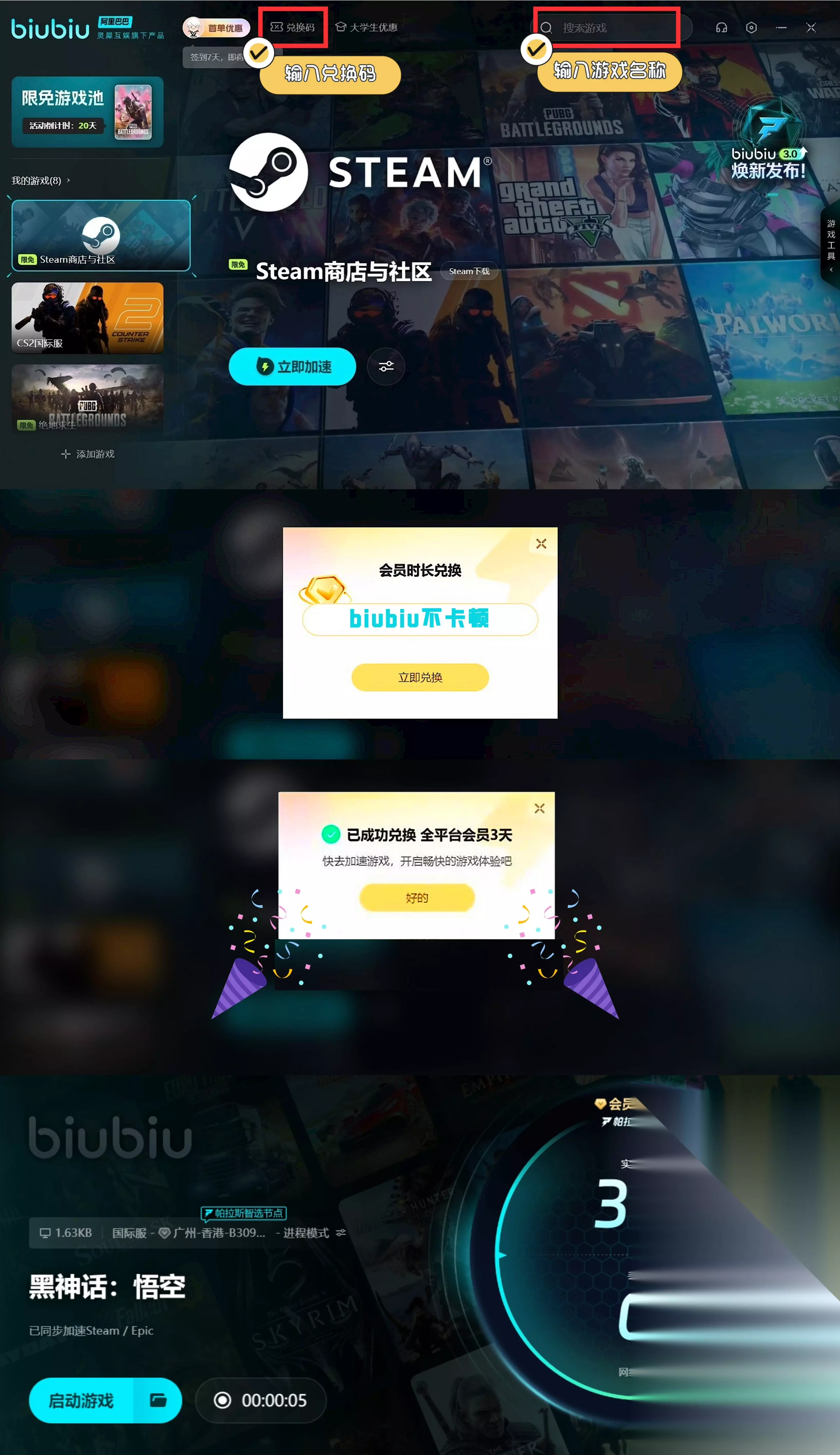 有了biubiu的帮助,相信各位玩黑神话悟空的玩家都能明显感受到游戏帧率上升和延迟降低,再去挑战那些很难打的妖王也都是手到擒来了。