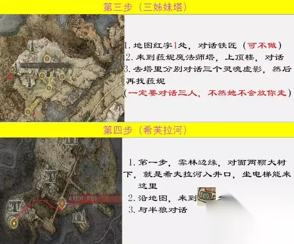 2、接着我们来到三姐妹塔,在这里对话铁匠,之后找菈妮,然后前往希芙拉河与半狼对话。