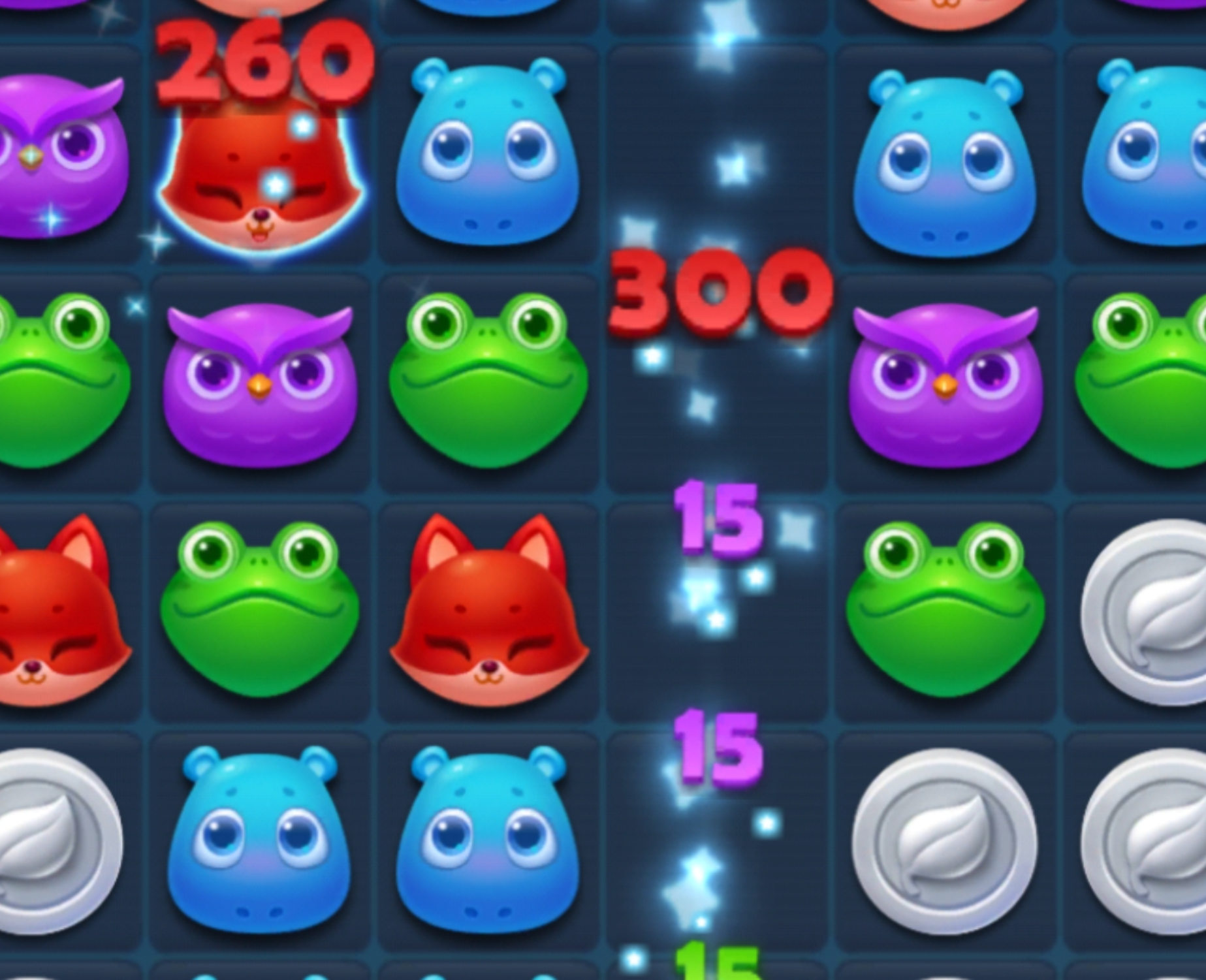 开心消消乐308关通关技巧攻略: 我们看到308关的主要目标就是收集足够的金豆荚,但是想要收集金豆荚主要先消除雪块的阻碍。只有消除了金豆荚下方的雪块,我们才可以更快的收集到金豆荚。关卡有章鱼与树藤,在下落的时候还要注意要树藤的阻碍。 开心消消乐308关三星攻略: 1、首先通过上方的动物,消除上方存在的雪块,我们可以看到上下方的雪块是错杂交错摆放。左右侧都有章鱼与树藤,在消除的时候,上方的金豆荚下落之后,直接会钓到下方章鱼与树藤的旁边。 2、先消除上方的雪块,让金豆荚下落,但是树藤与毒液会开始阻挡,我们在消除的时候,要及时的消除毒液。还有注意让金豆荚尽快的落到树藤的下方。树藤出现阻隔的时候,我们要尽快合成特效。 3、金豆荚落到最下方的时候,树藤也会收回的,我们直接消除最下面的雪块,就可以让雪块上方的金豆荚下落。当树藤收起来的时候。动物是不会阻挡金豆荚下落的,只要直接消除就可以了。虽然步数用完,但是只有成功的过关就好。收集金豆荚想要获得高分,就要不断地使用特效。 第301-400关攻略