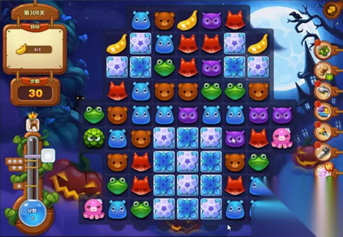 《开心消消乐》308关三星攻略,308关是消除金豆荚的关卡,玩家需要在30步之内消除3个金豆荚,是不是挺简单的,这一关要注意的是藤条球,只要不缠住动物就很容易过关。现在就让小编为你们介绍开心消消乐308关攻略。