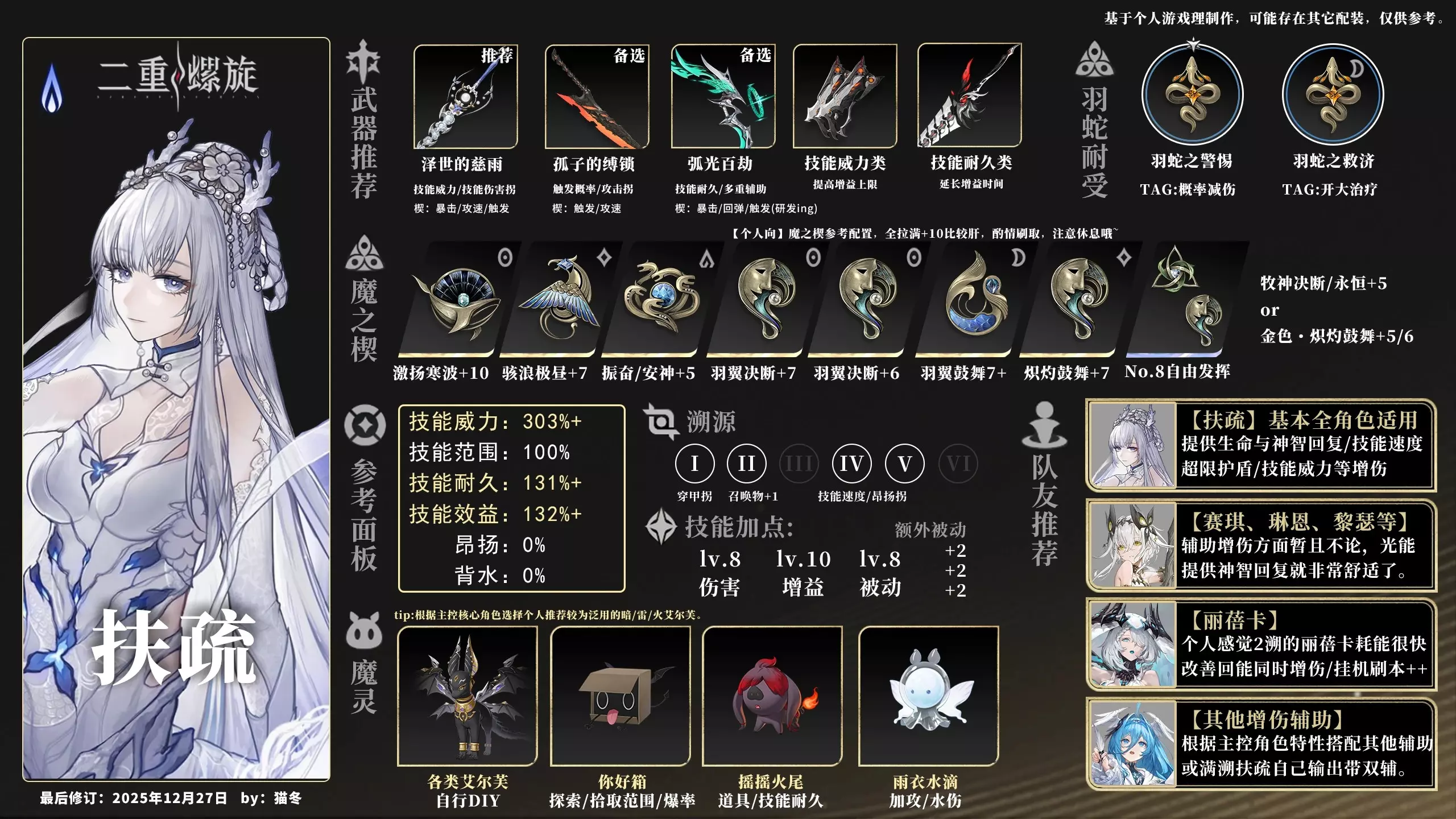 我都不敢想精五春玦戟的效率 视频中只提到一点扶疏 不会超级跳的话就用扶疏跑吧 开局开大 一直穿引共鸣就行 跑法不唯一 只展示个人跑法