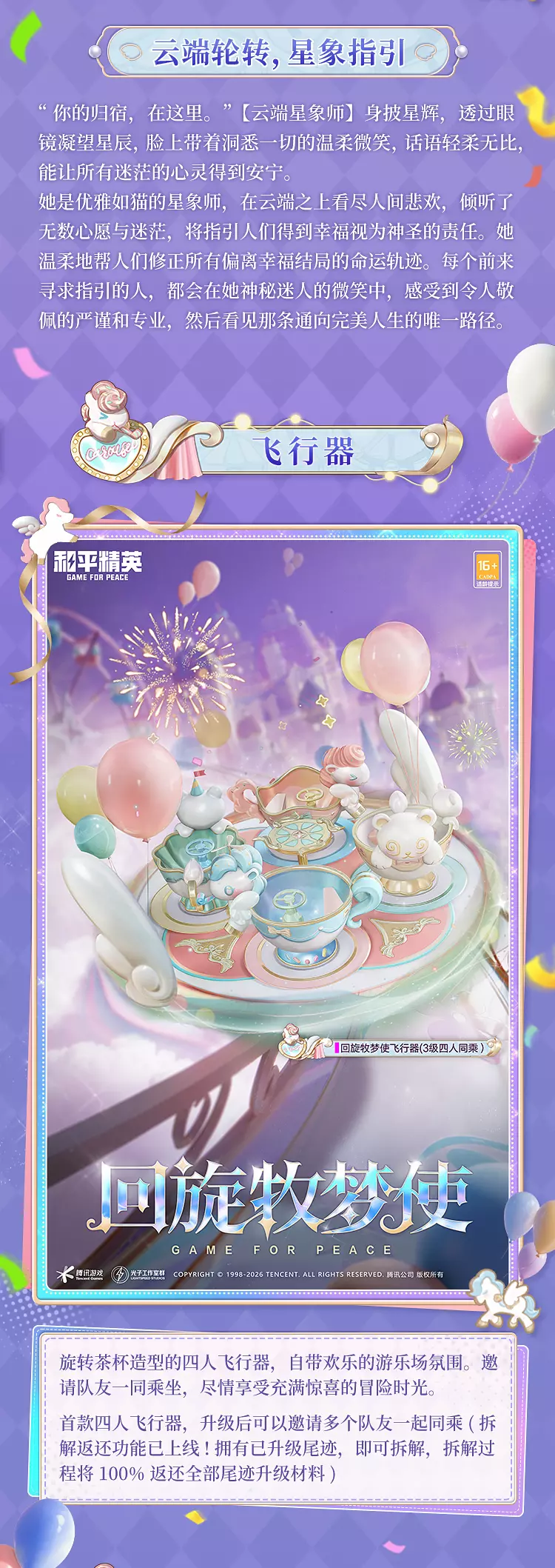 1月16日-1月29日,购买新年幸运礼包随赠飞行器升级组件,拿下全部新年幸运礼包后可立即升级到双人同乘,单个礼包限购一次。