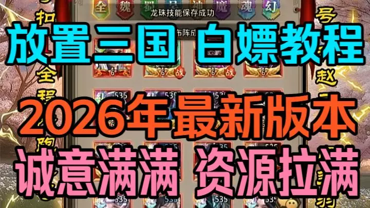 这是《放置三国》内购魔改版游戏分享,该版本内置后台且道具全解锁,还会持续更新。展示的账号为V18高玩账号,拥有全服第一的魔、幻、魂等系列满星高战武将,还有强力镇器套装,玩家可通过简介获取该版本,轻松当游戏大佬。