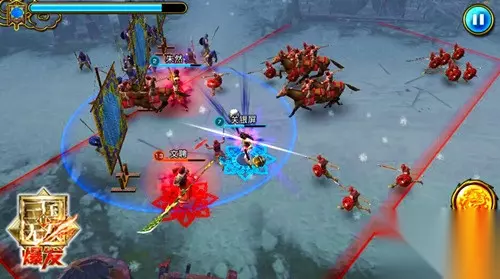 画面:★★★★☆ 作为一款在手机平台上发售的作品,《真·三国无双 爆发》与系列前作相比在画面上有着一定程度的不同。小编进入游戏后,首先感觉到的是界面风格较为鲜艳,左边的功能类按钮铺陈有序,相对于许多国内游戏来说更为精简,能够让玩家一目了然。剧情中的人设沿袭了光荣惯用的画风,手中紧握龙胆枪的勇将赵云、霸气侧漏的无双悍将吕布,三国中的名将们绝对能够让你一眼识别,造型较之前代更为精美。从这里也能看出光荣在手游《真·三国无双 爆发》上是下了苦功的。 接下来说说游戏的战斗画面,这里将系列前作中的第一视角改为了45°俯视角,使得玩家能够纵览整个战场,也更符合手游用户的操作习惯。另外战斗中会存在不同的战斗情况:无论是冰天雪地还是雷雨天气,骑兵对冲的遭遇战或是布满弓箭手防御塔的攻城战,光荣都力图将这些战斗真实重现,所以说一款好游戏需要依靠无数个细节来支撑。