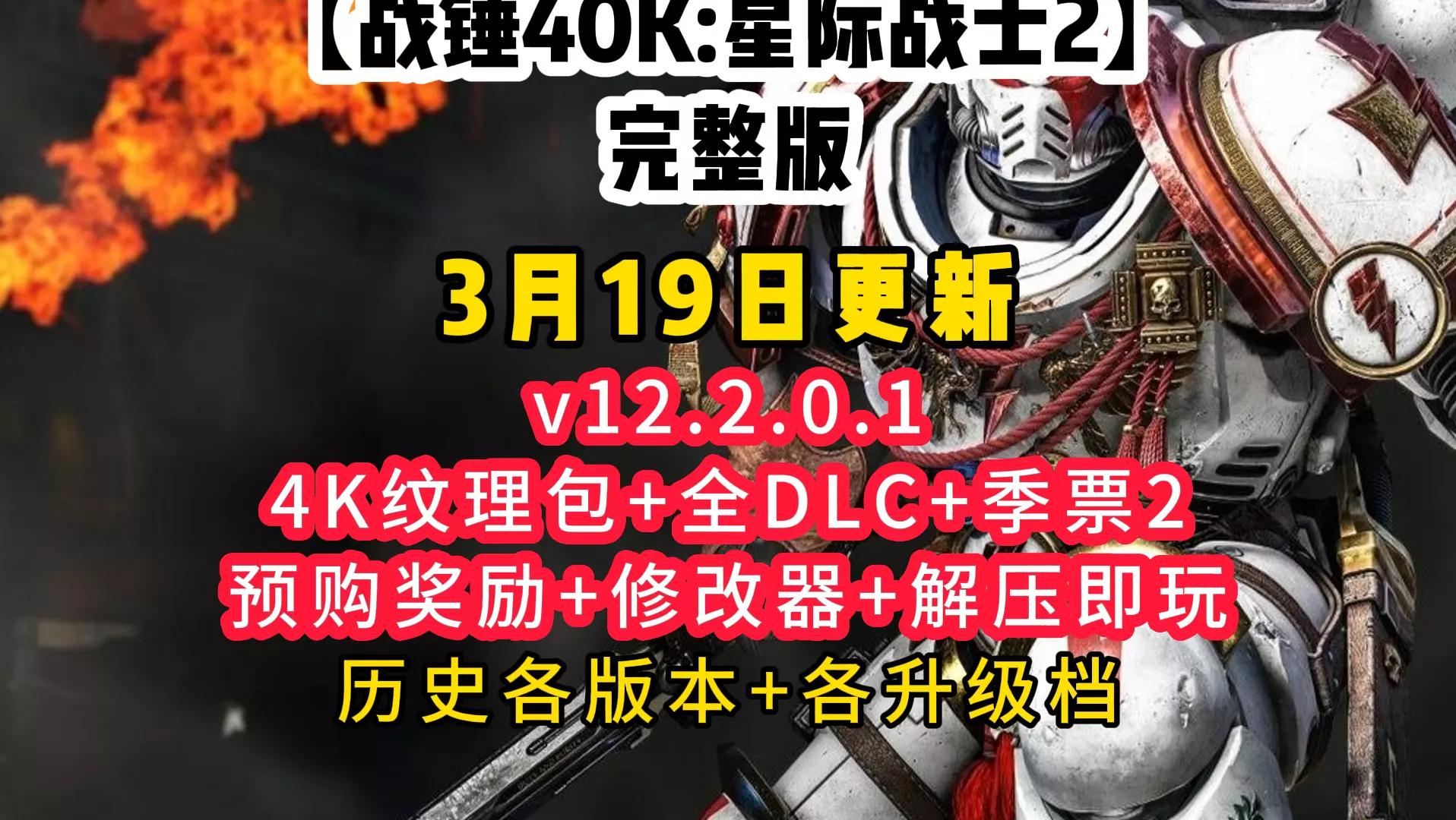 本帖带来《战锤40K:『什一税-牺牲』》的画质重置版内容,该版本拥有8K分辨率、50FPS帧率、21:9的画面比例,能为观众呈现更优质的视觉体验。