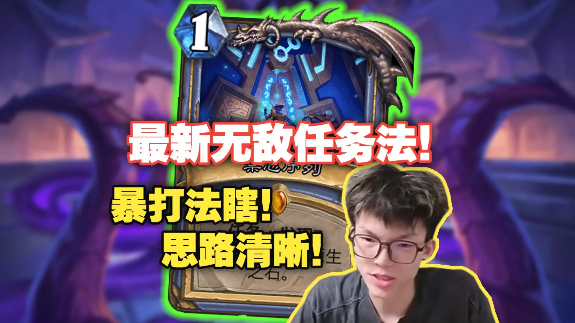 本文分享驴鸽解说的炉石传说春季平台赛A组败者组决赛对局,对局中玩家使用天胡任务法,4费就成功提刀,仅6费就斩杀了对手法术瞎,展现了任务法的天胡起手的超强压制力。
