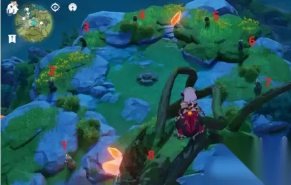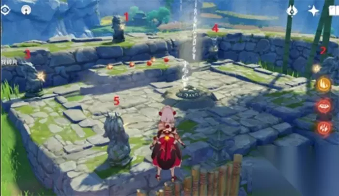 7、按照下图标记12345顺序,依序启动石像即可解谜,完成后会出现一个华丽的宝箱,打开将获得新的线索。