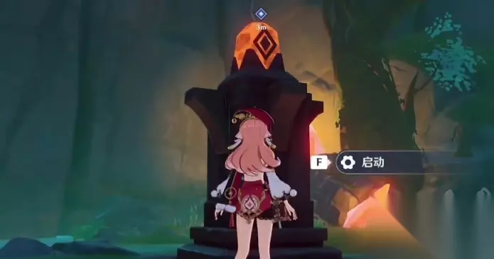 3、在三块橙黄色晶石旁边可以分别有一座石像 ,找到并启动它们。
