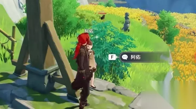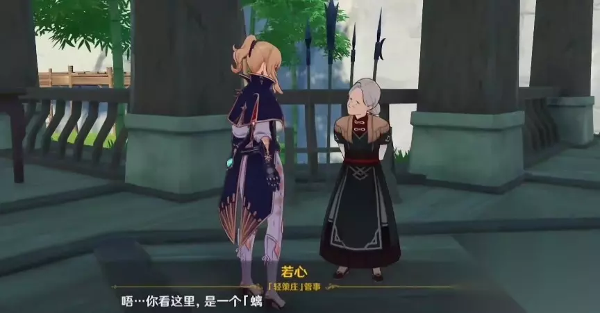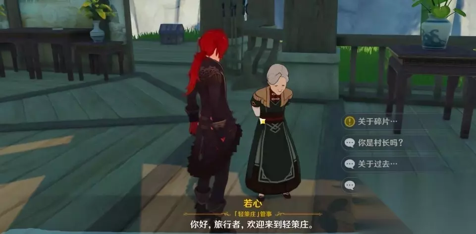 5、到轻策庄门口找到“阿佑”对话她会建议去问“若心奶奶”,此时地图上会标出NPC的位置。