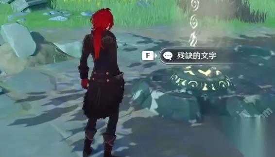 2、进入遗迹深处,在遗迹中央有一个白色光柱旁边有机甲怪守护,击败后即可与【残缺的文字】对话获得新线索 。