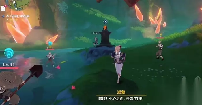 12、前往遗迹中央的开关处会遇到盗宝团袭击,击败盗宝团后即可打开密藏开关。