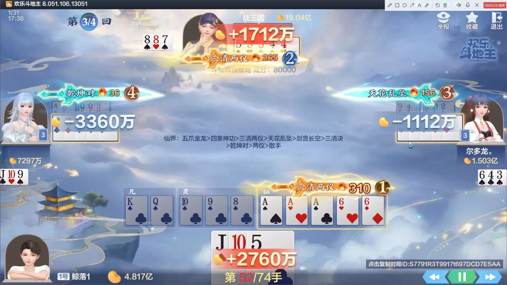 斗仙牌天牌,一局证道3次,狂砍2.6亿
