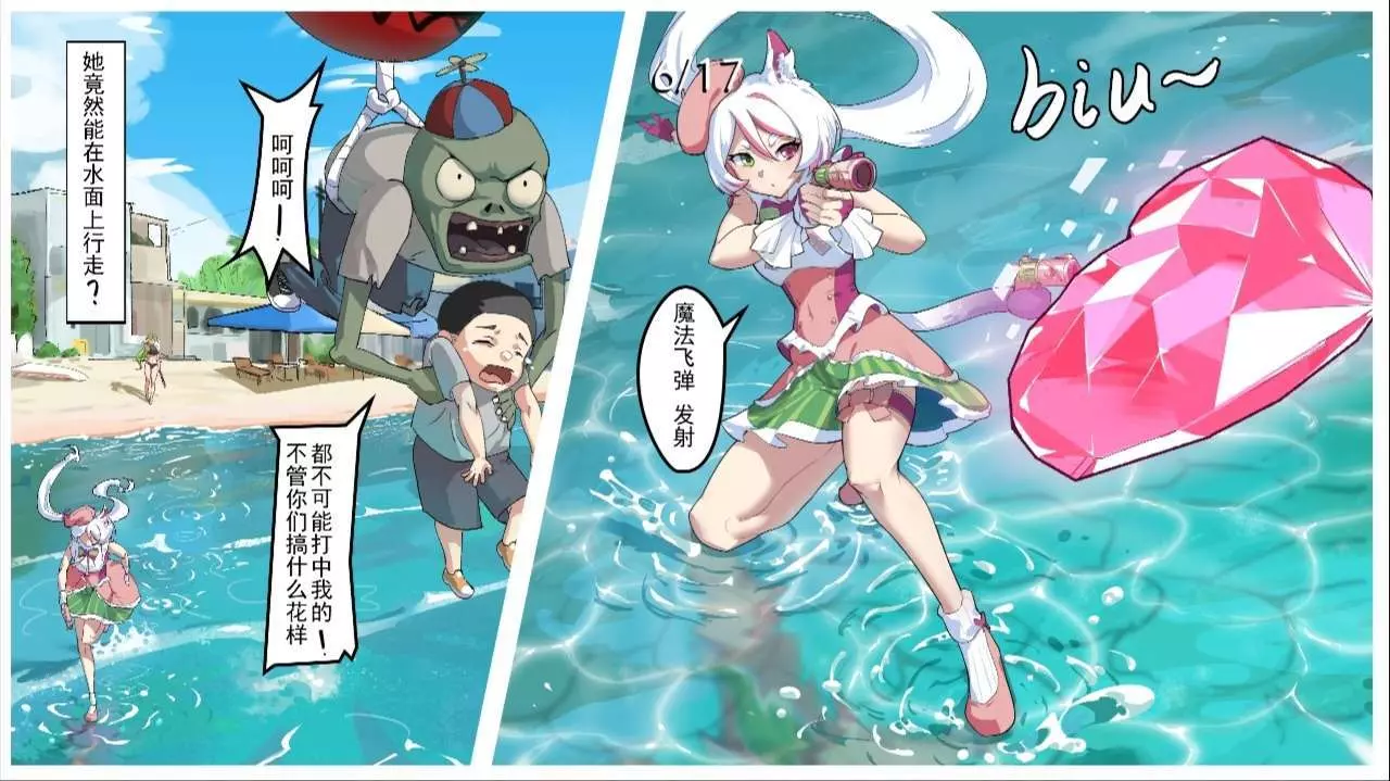#植物娘大战僵尸猫尾草和双向豌豆漫画图